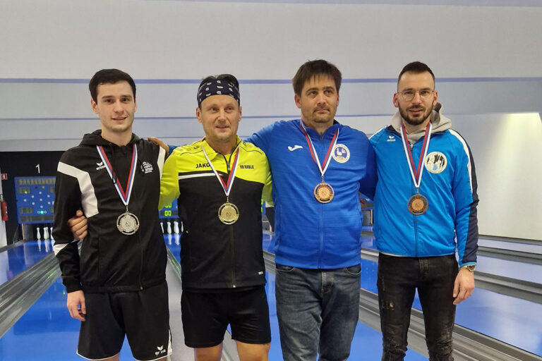 Na sliki dobitniki medalj: Danijel Lavrič, Uroš Stoklas, Gregor Gorjup in Jure Starman. (Foto: kegljaska-zveza.si) 7. februarja je bilo v Kamniku odigrano državno prvenstvo...